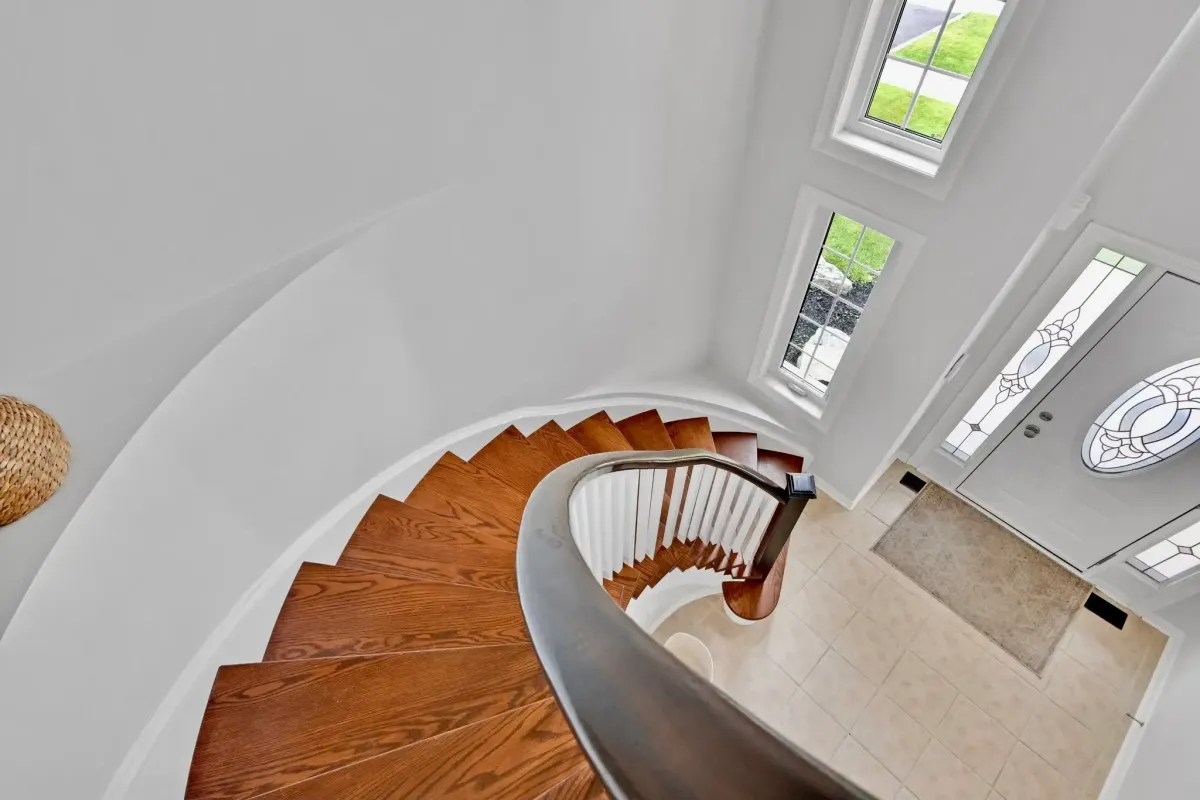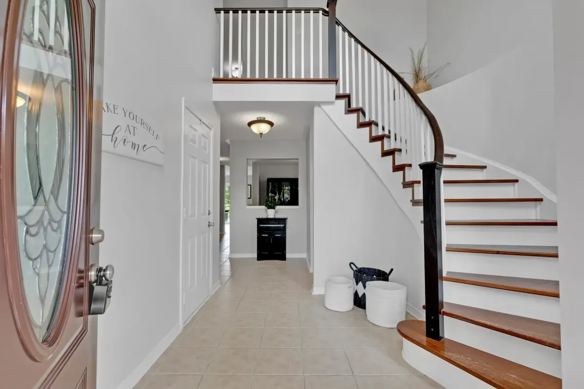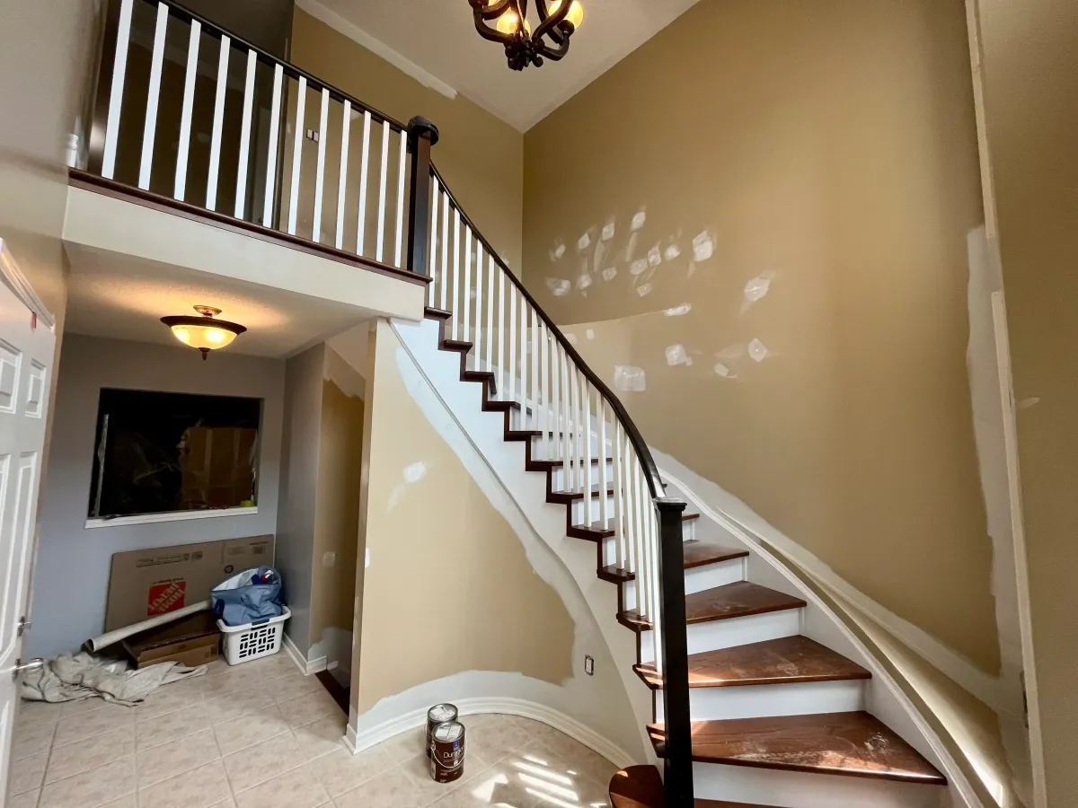 This Bowmanville project focused on refreshing a central staircase and surrounding walls to dramatically brighten and modernize the home’s entryway.