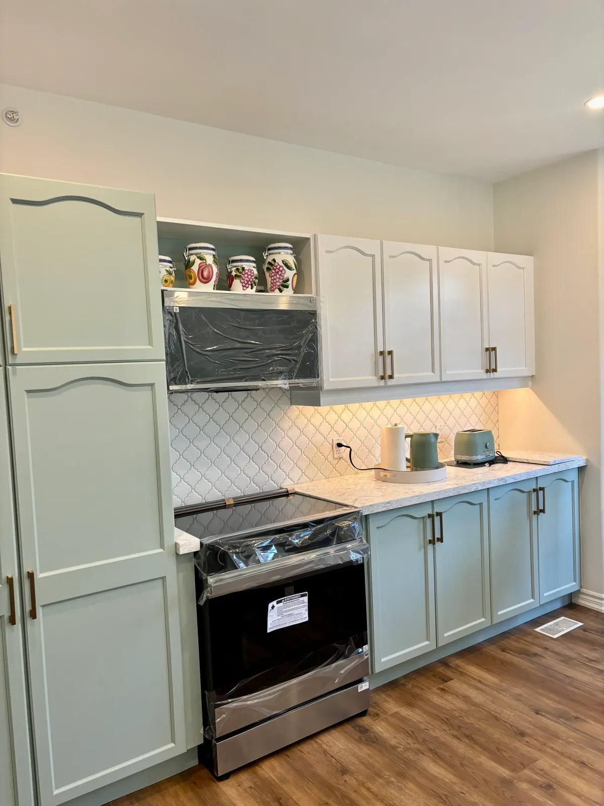 This Uxbridge kitchen renovation focused on upgrading the space without replacing structurally sound cabinetry.
